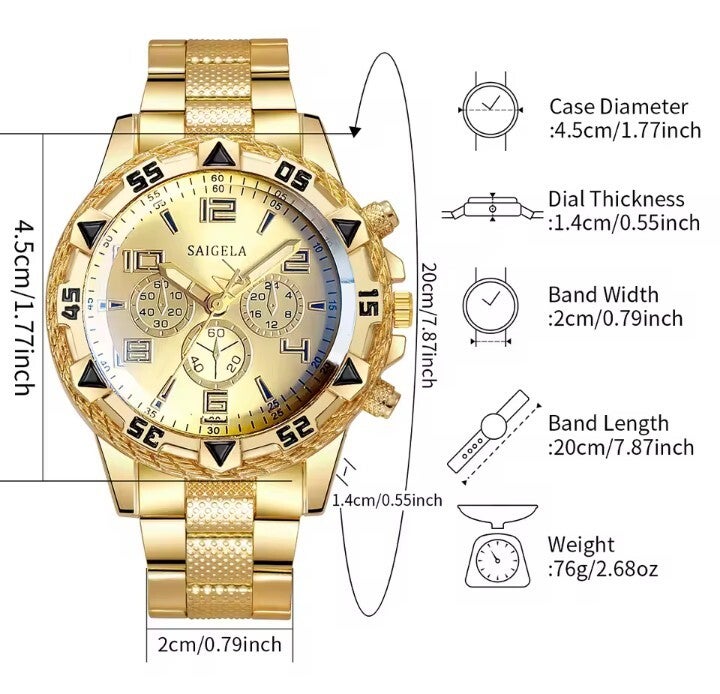 This is a beautiful gold on gold face, gold plated, large watch for men.